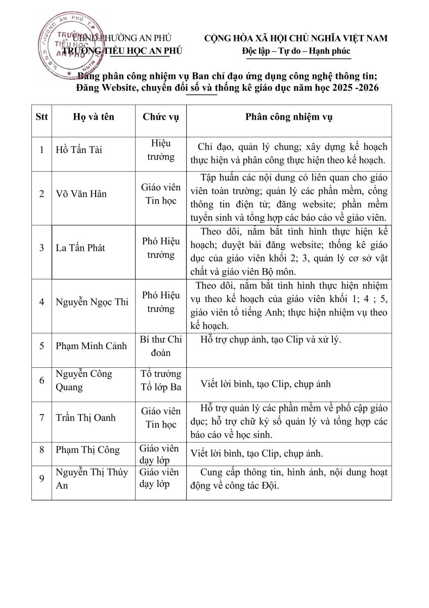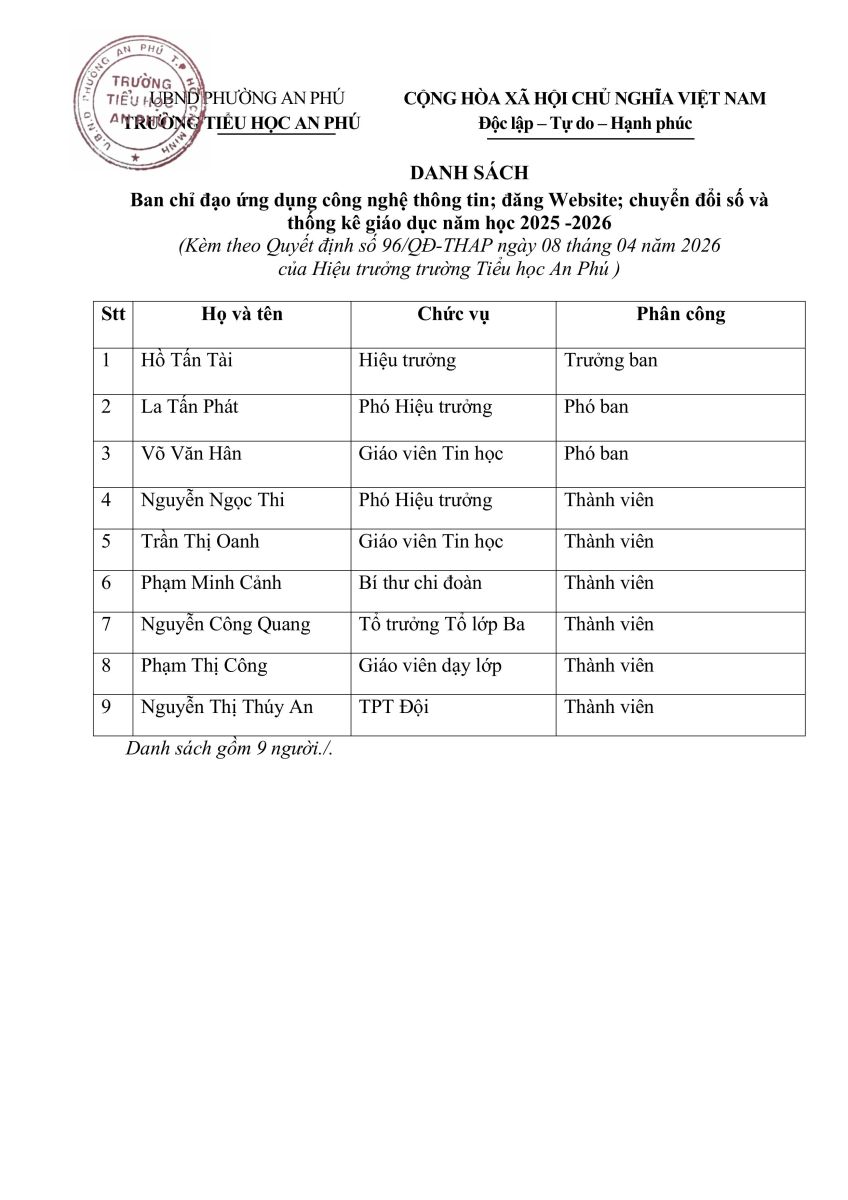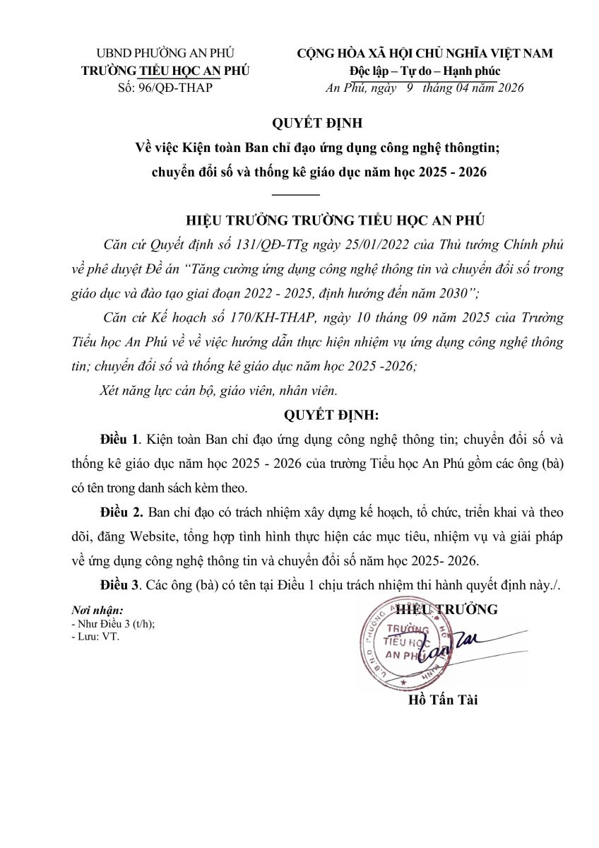 Quyết định về việc Kiện toàn Ban Chỉ đạo ứng dụng công nghệ thông tin; chuyển đổi số và thống kê giáo dục năm học 2025-2026