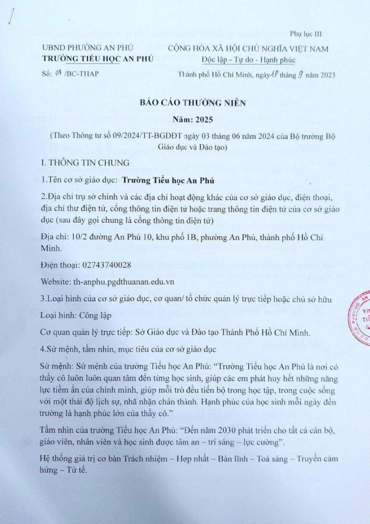 Nhà trường xin gửi thông báo đến giáo viên, phụ huynh và các em học sinh Báo cáo thường niên năm 2025.