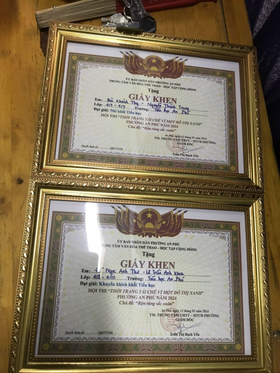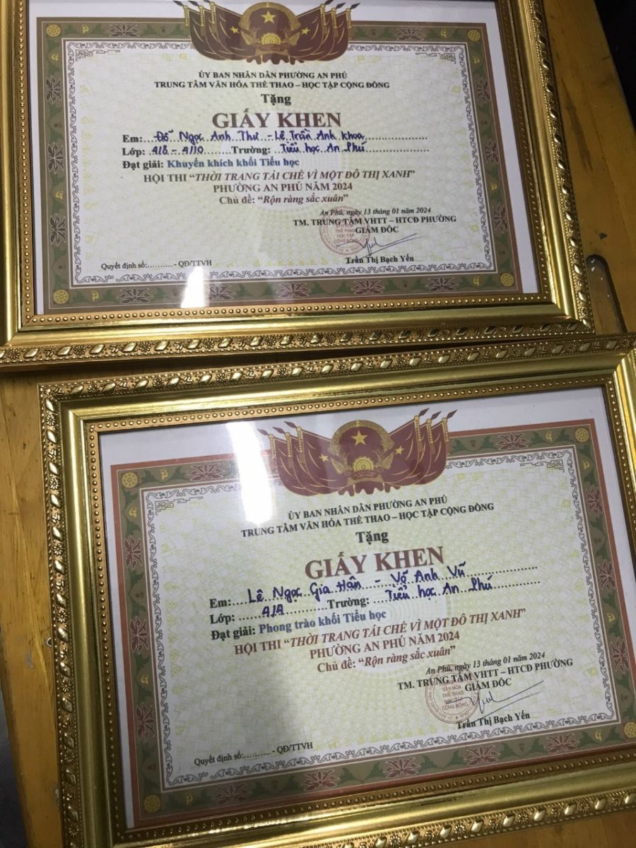 Liên đội TH An Phú - Đạt giải Nhì, giải Khuyến Khích và giải Phong trào trong Cuộc thi: “Thời trang tái chế “Khối tiểu học. Hội thi AEROBIC – AEROBIC DANCE TRONG THỜI TRANG TÁI CHẾ VÌ MỘT ĐÔ THỊ XANH PHƯỜNG AN PHÚ NĂM 2024 CHỦ ĐỀ: "RỘN RÀNG SẮC XUÂN"