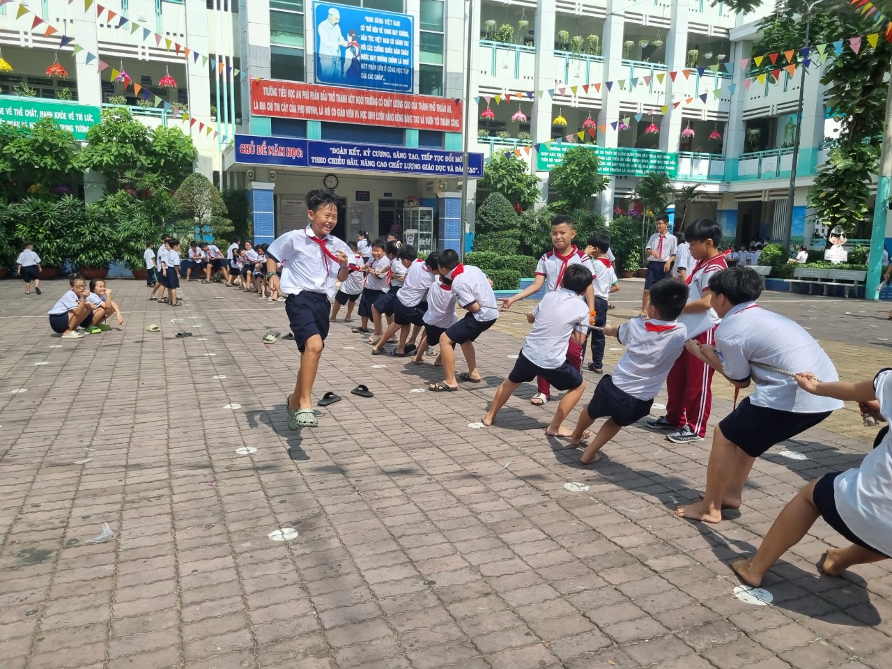 Liên đội Th An Phú tuần từ 1/5/2024 – Hưởng ứng 7 tuần thi đua chào mừng 70 năm chiến thắng Điện Biên Phủ đã triển khai mô hình: “Giờ ra chơi trải nghiệm, sáng tạo”. Thầy cô Thể Dục, TPT sẽ tổ chức nhiều buổi trải nghiệm vào những giờ ra chơi khác nhau. Thông qua đó các em được tham gia các trò chơi như nhảy dây, cờ vua, cờ tướng, đá cầu, kéo co, cầu lông…các hoạt đông trong giờ ra chơi giúp các em học sinh giải lao vui tươi sau những giờ học căng thẳng, tăng cường sự dẻo dai, rèn luyện được sức khỏe của chính bản thân và gắn kết tình bạn.