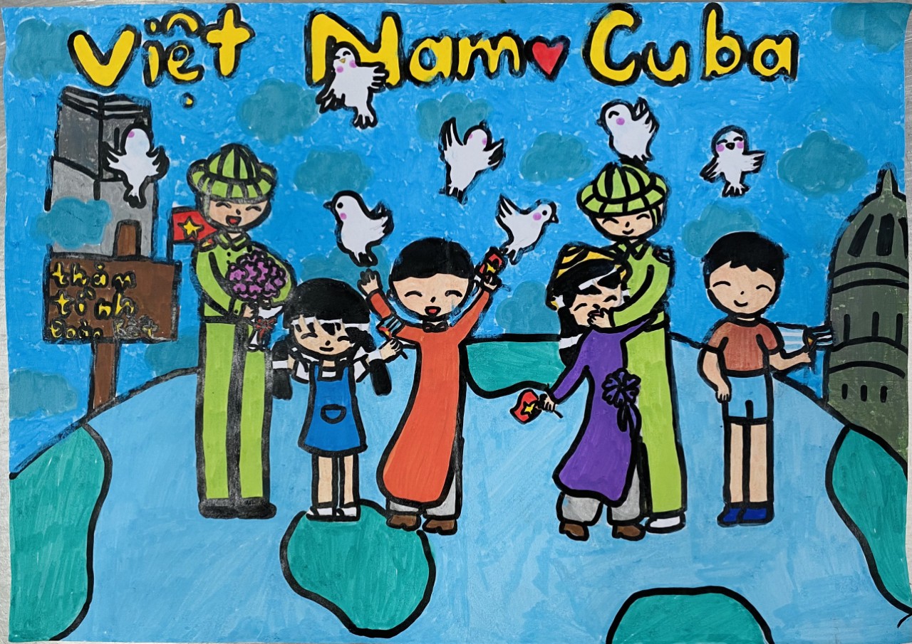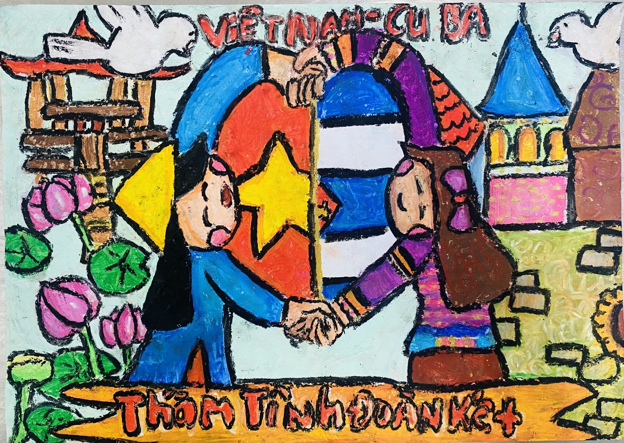 Vẽ tranh Việt Nam và Cuba thắm tình đoàn kết được học vào các tiết mỹ thuật, các bạn học sinh được giáo viên chia sẻ, thông tin về tình bằng hữu giữa hai nước Việt Nam – Cuba, đó cũng là ý tưởng và kiến thức để các em thỏa sức sáng tạo, mỗi tác phẩm của học sinh đều có sắc thái riêng, có góc nhìn khác nhau xong tựu chung đều thể hiện đậm nét chủ đề và nội dung yêu cầu của cuộc thi thể hiện sự hiểu biết về tấm lòng, tình cảm của các em đối với mối quan hệ đặc biệt Việt nam – Cuba, sự yêu mến các vị lãnh tụ vĩ đại, các anh hùng của hai dân tộc, tình cảm yêu thương gắn bó của nhan dân Việt Nam và Cuba, trong các hoạt động giao lưu chia sẻ và giúp đỡ lẫn nhau.