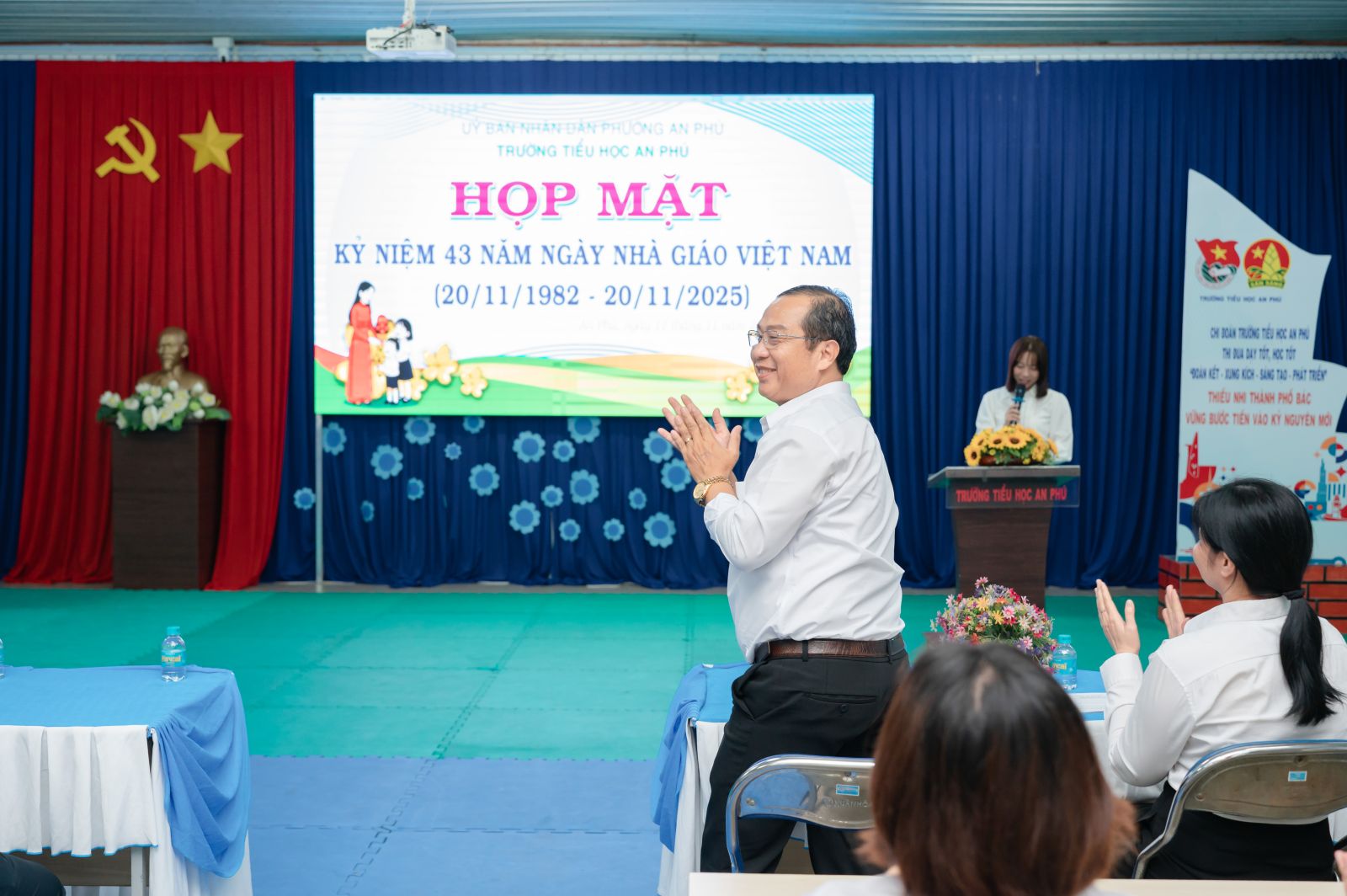 TP. Hồ Chí Minh, ngày 17/11/2025 – Hòa trong không khí tôn vinh nghề giáo trên cả nước, Trường Tiểu học An Phú (phường An Phú) đã long trọng tổ chức Chương trình Họp mặt Kỷ niệm 43 năm Ngày Nhà giáo Việt Nam 20/11.