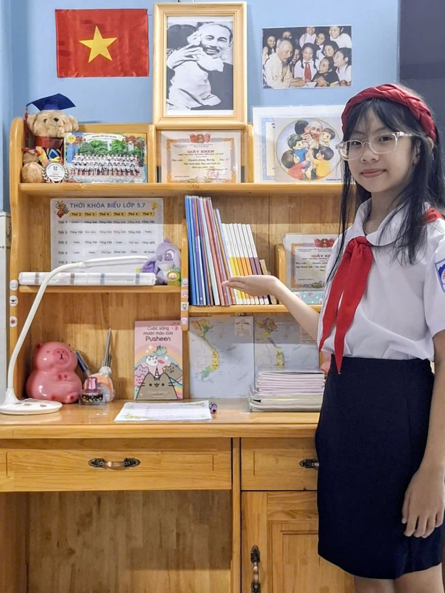 Không chỉ ở trường, phong trào còn được lan tỏa về từng gia đình. Mỗi học sinh cùng cha mẹ đã sắp xếp góc học tập tại nhà với ảnh Bác và những lời dạy giản dị mà sâu sắc. Những góc học tập ấy không chỉ là nơi học tập quen thuộc mà còn trở thành không gian giáo dục giàu ý nghĩa, nuôi dưỡng tình yêu thương và tinh thần rèn luyện của các em.