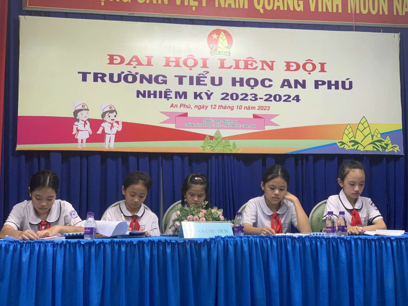 Liên đội TH AN PHÚ tổ chức đại hội Liên đội nhiệm kỳ 2023-2024 với sự có mặt của thầy La Tấn Phát - Phó Hiệu Trưởng trường TH AN PHÚ. Chị Dương Thị Kiều Oanh - Phó bí thư đoàn, chủ tịch Hội đồng Đội phường. Vào lúc 14 giờ chiều ngày 12 tháng 10 năm 2023 Liên đội trường Tiểu học An Phú đã long trọng tổ chức Đại hội Chi đội để bầu ra những em đội viên xuất sắc nhất là lực lượng nòng cốt của Chi Đội, nằm trong Ban chỉ huy chi đội và cử ra đại biểu chuẩn bị tham dự chương trình Đại hội Liên Đội sắp tới. Với mục đích phát triển đội viên, xây dựng liên đội vững mạnh đồng thời xây dựng môi trường học tập cho các em thiếu nhi vừa học vừa chơi và tham gia tốt các phong trào có đội ngũ đứng đầu để đảm bảo thực hiện tốt các hội thi và phong trào của Liên đội.