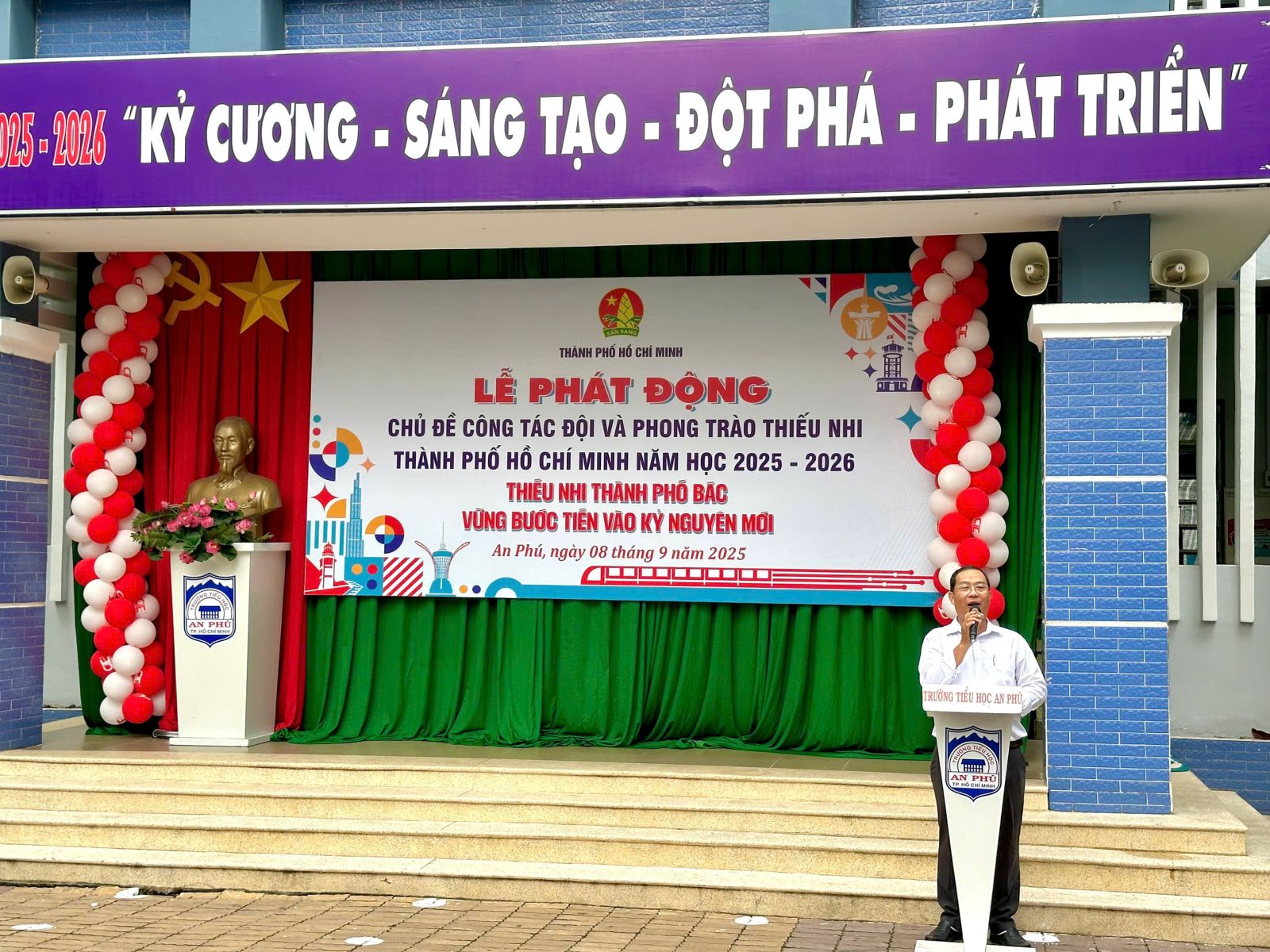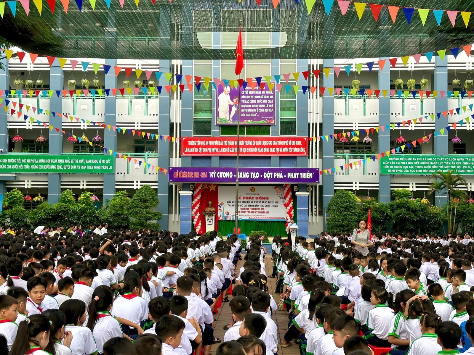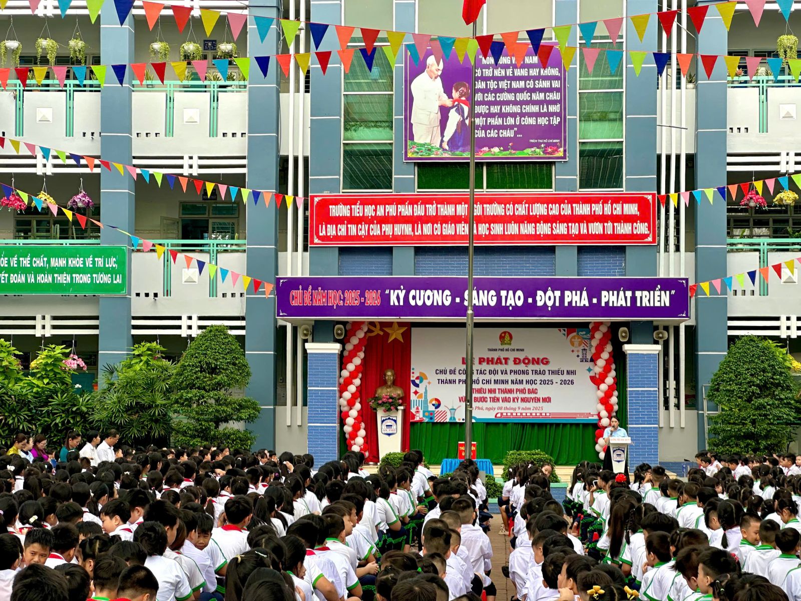 Nhằm phát động và lan tỏa sâu rộng đến các em Đội viên, thiếu nhi Thành phố về các hoạt động tổ chức của Đội Thanh Niên Tiền Phong Hồ Chí Minh trong năm học mới với nhiều hoạt động phong phú và sôi nổi. Ngày 08/09/2025, được sự phân công của Hội Đồng Đội Thành phố, Liên Đội trường Tiểu học An Phú tổ chức lễ phát động chủ đề công tác Đội và phong trào thiếu nhi năm học 2025-2026 với chủ đề: “Thiếu nhi Thành phố Bác vững bước tiến vào kỷ nguyên mới”.