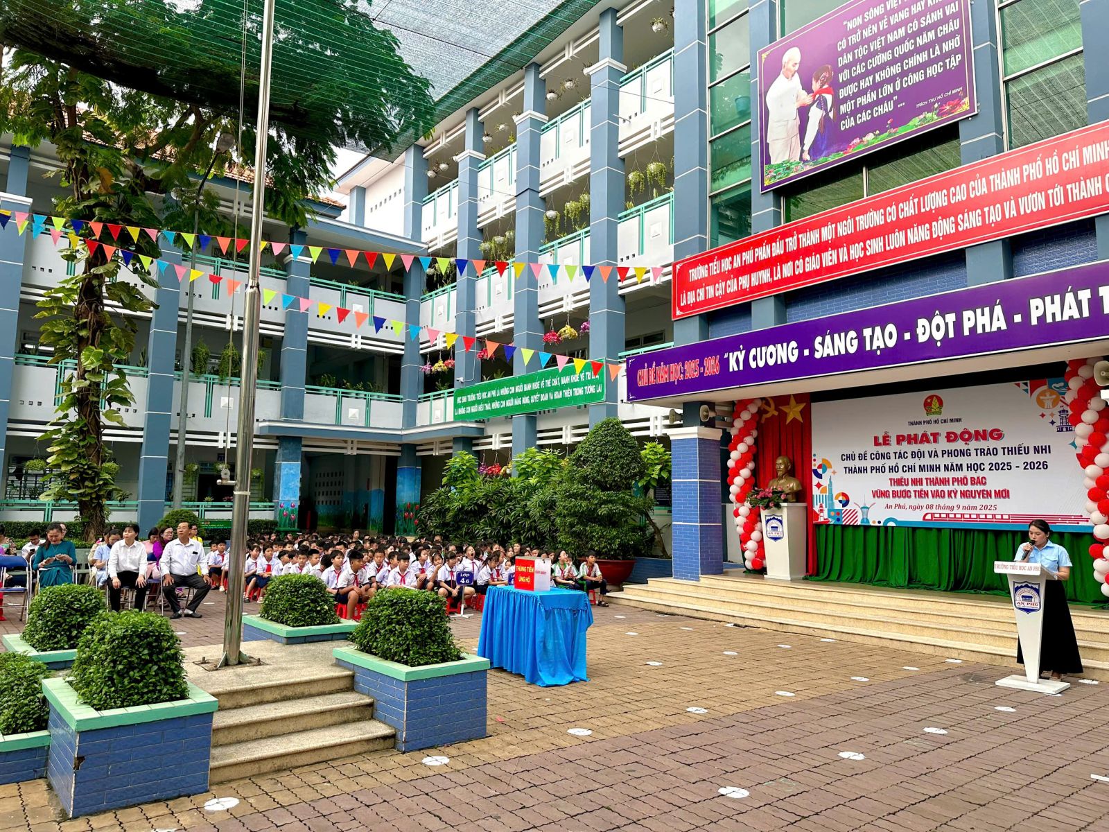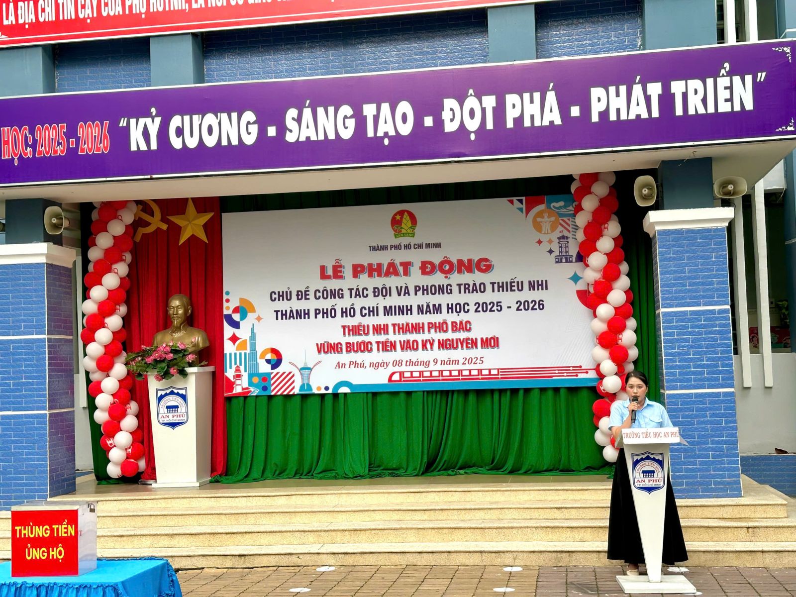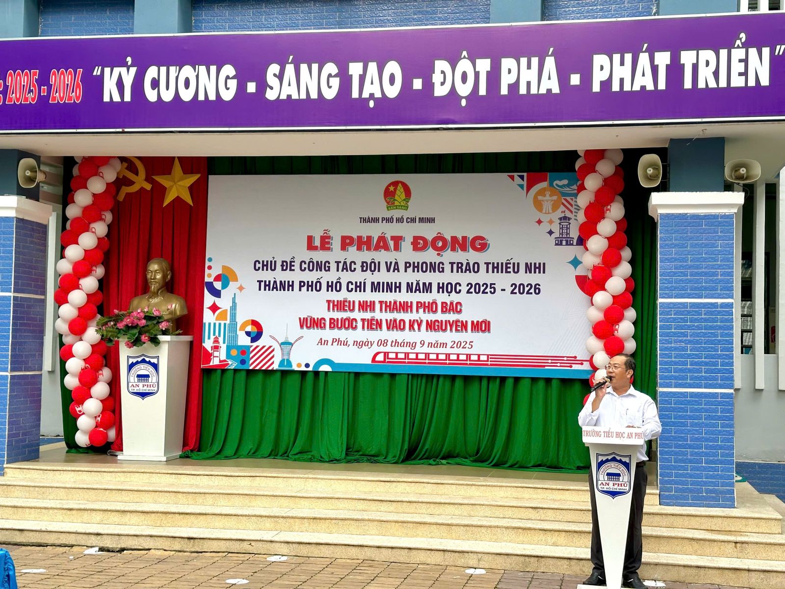 Nhằm phát động và lan tỏa sâu rộng đến các em Đội viên, thiếu nhi Thành phố về các hoạt động tổ chức của Đội Thanh Niên Tiền Phong Hồ Chí Minh trong năm học mới với nhiều hoạt động phong phú và sôi nổi. Ngày 08/09/2025, được sự phân công của Hội Đồng Đội Thành phố, Liên Đội trường Tiểu học An Phú tổ chức lễ phát động chủ đề công tác Đội và phong trào thiếu nhi năm học 2025-2026 với chủ đề: “Thiếu nhi Thành phố Bác vững bước tiến vào kỷ nguyên mới”.