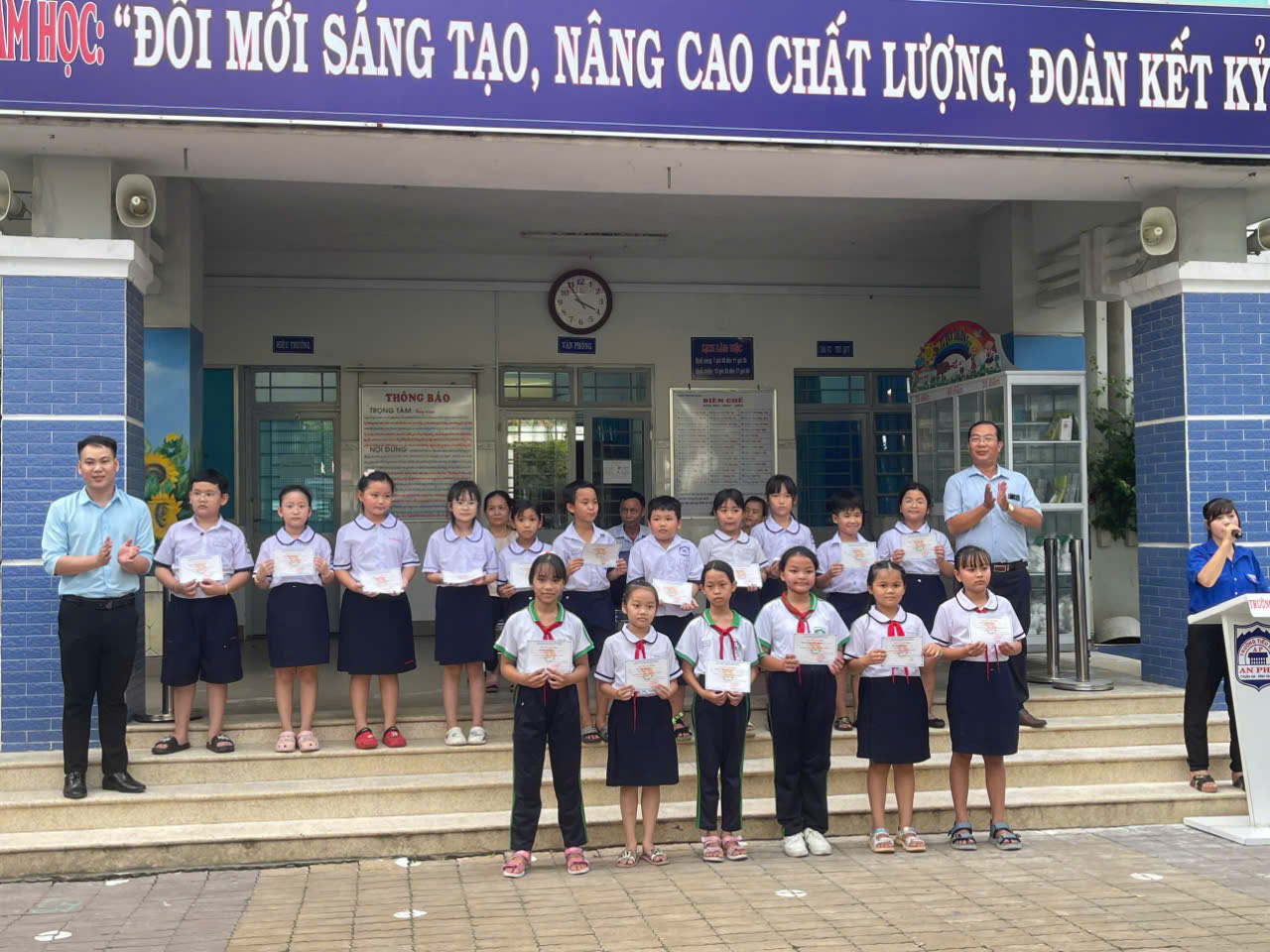 Chiều ngày 14/10/2024 trong tiết sinh hoạt dưới cờ Liên đội đã tổ chức trao giấy tuyên dương cho 34 bạn học sinh ca học buổi chiều là học sinh tiêu biểu của tháng 10, có thành tích học tập tốt và hăng hái tham gia các hoạt động.