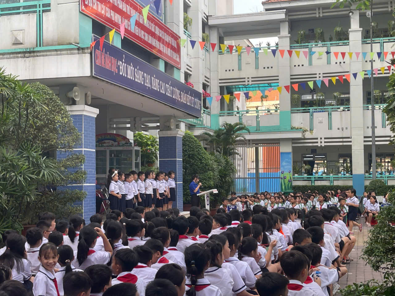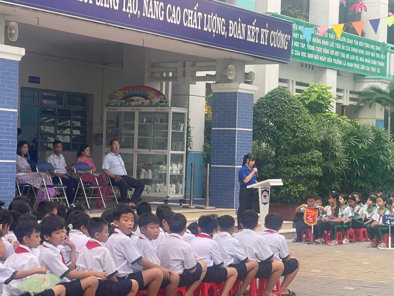 Liên đội Tiểu học An Phú tổ chức lễ chào cờ hàng tuần trong không khí hân hoan của những ngày học kỳ 1 của năm học với những kiến thức và hành trang mới.