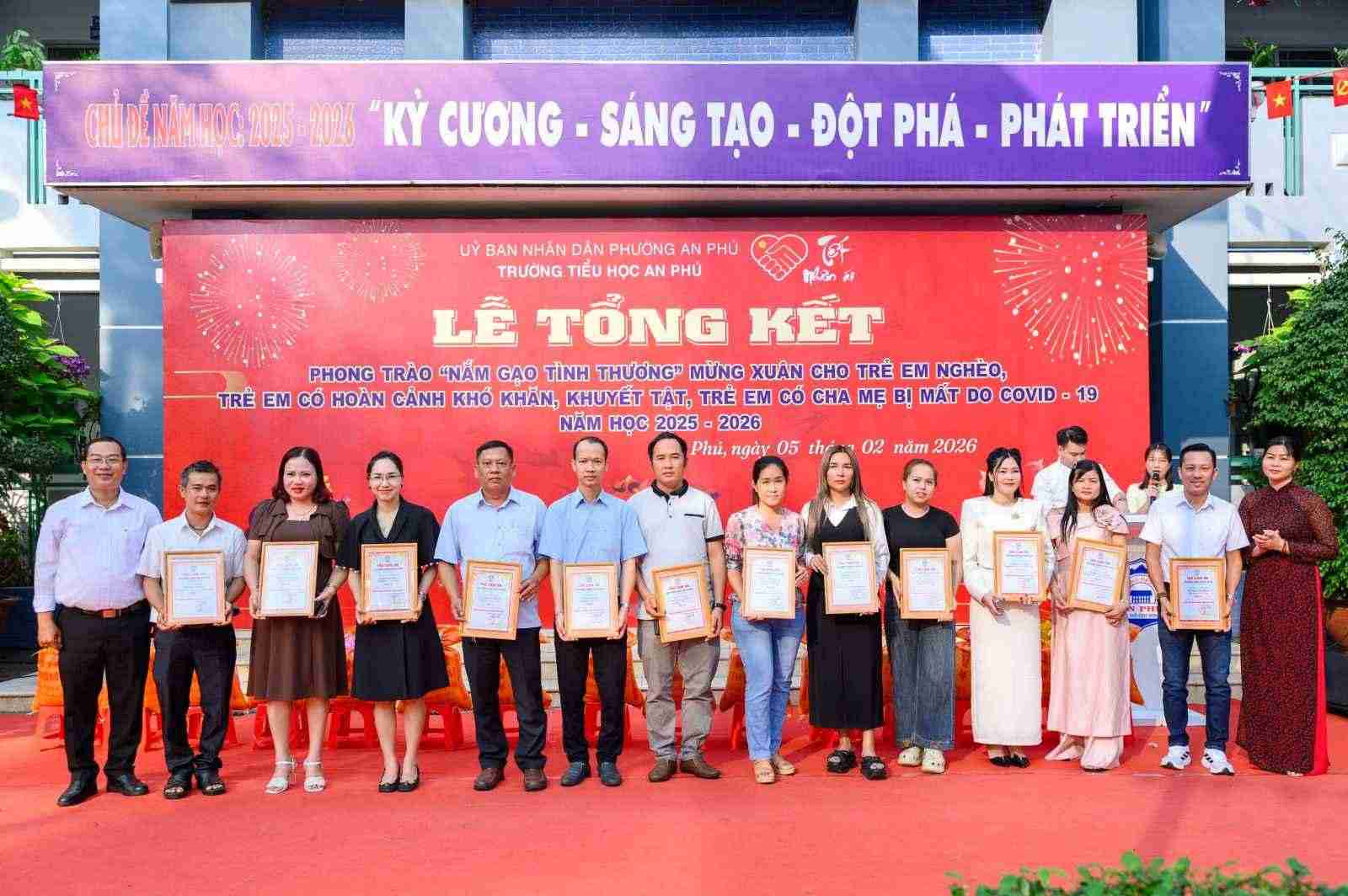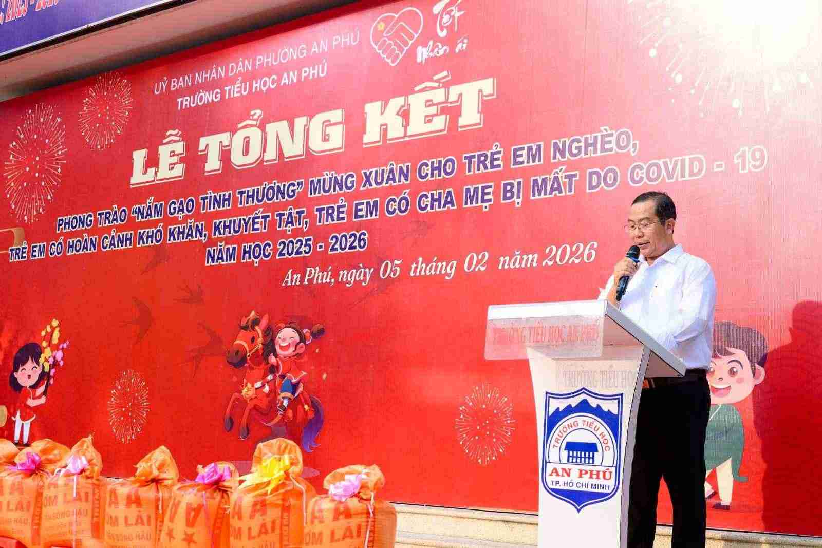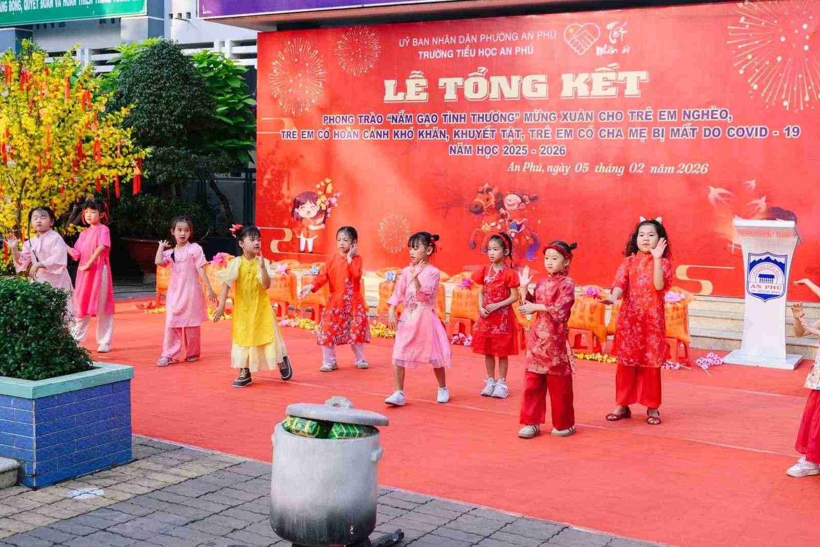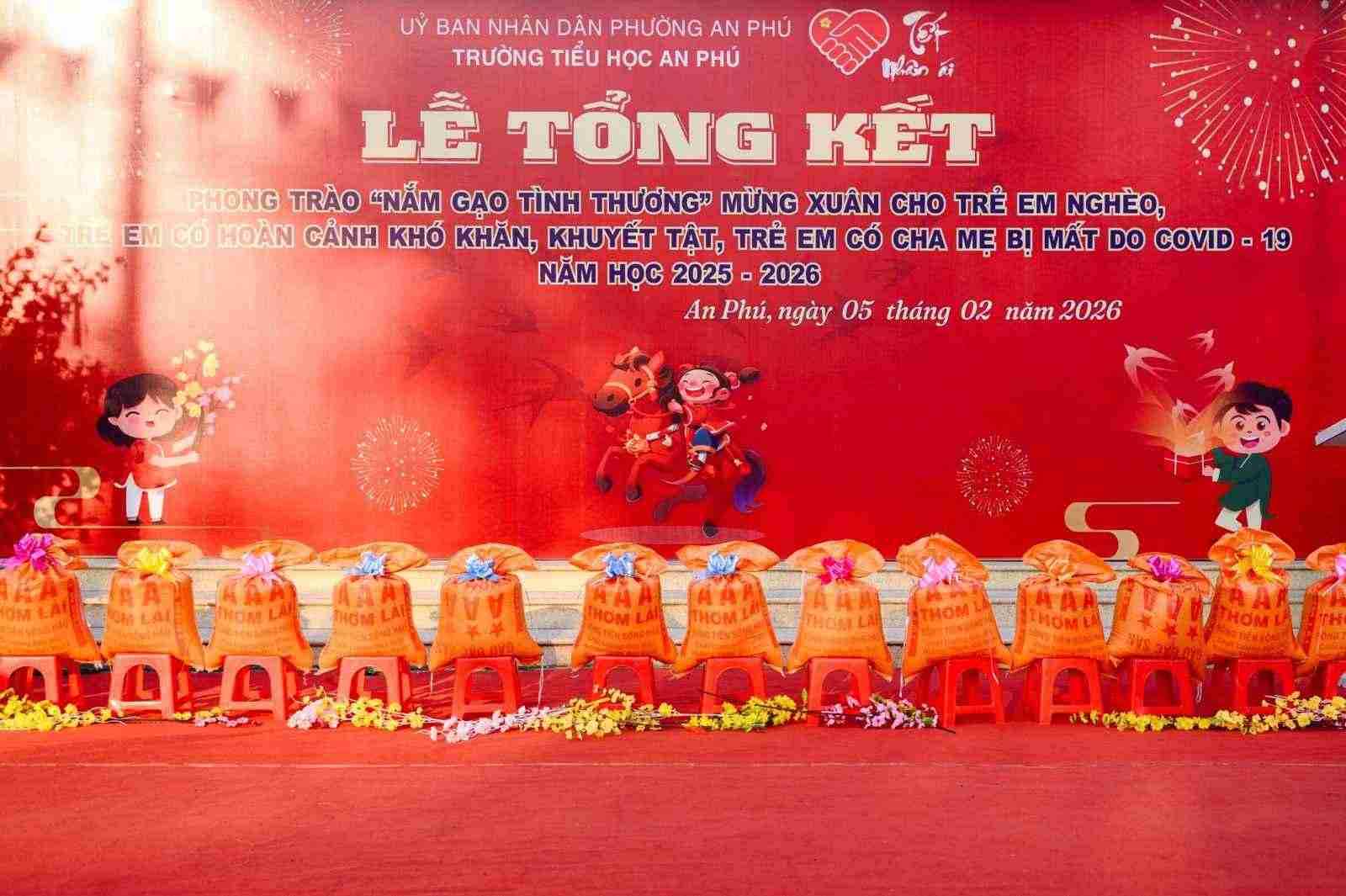Sáng ngày 05/02/2026, Chi Hội Chữ thập đỏ Trường Tiểu học An Phú đã tổ chức Lễ tổng kết phong trào “Nắm gạo tình thương”, nhằm chăm lo cho trẻ em nghèo, trẻ em có hoàn cảnh khó khăn, trẻ em khuyết tật và trẻ em có cha, mẹ mất do dịch Covid-19