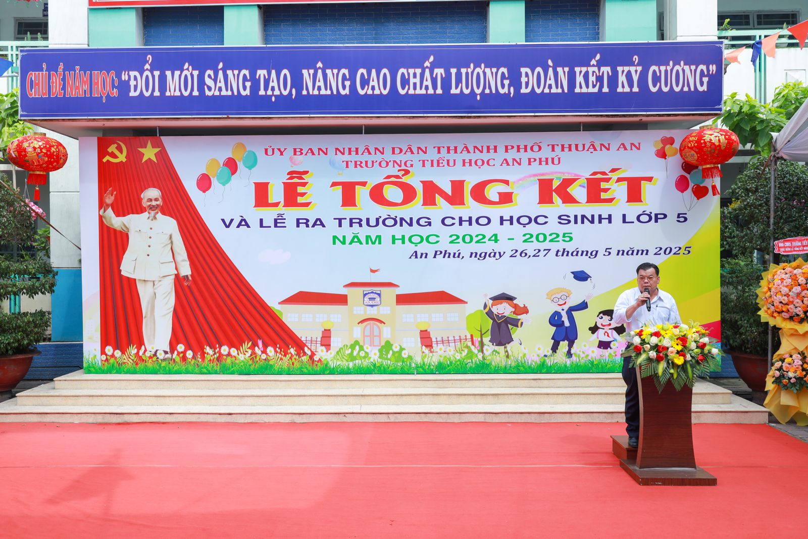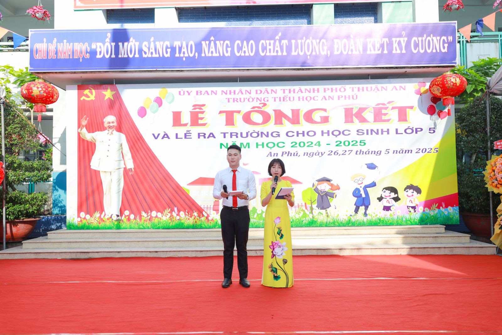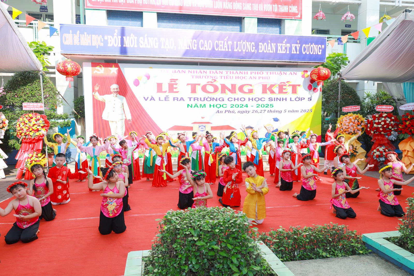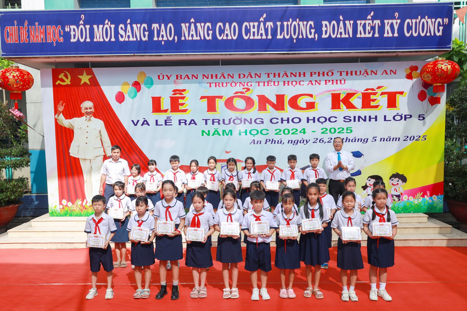 Trong hai ngày 26 và 27 tháng 5, trường Tiểu học An Phú đã long trọng tổ chức Lễ Tổng kết năm học 2024 – 2025 kết hợp Lễ ra trường cho học sinh lớp 5. Đây là sự kiện có ý nghĩa quan trọng, khép lại một năm học đầy nỗ lực và mở ra hành trình mới cho các em học sinh cuối cấp.
