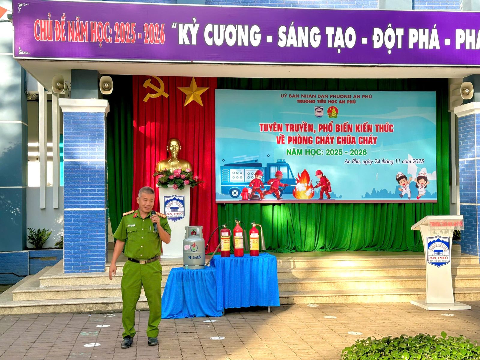 TP. Hồ Chí Minh, ngày 24/11/2025 – Sáng nay, Trường Tiểu học An Phú (phường An Phú, TP. Hồ Chí Minh) đã tổ chức thành công chương trình “Tuyên truyền, phổ biến kiến thức về Phòng cháy chữa cháy (PCCC)” năm học 2025 – 2026, với sự tham gia của toàn thể học sinh và quý thầy cô.
