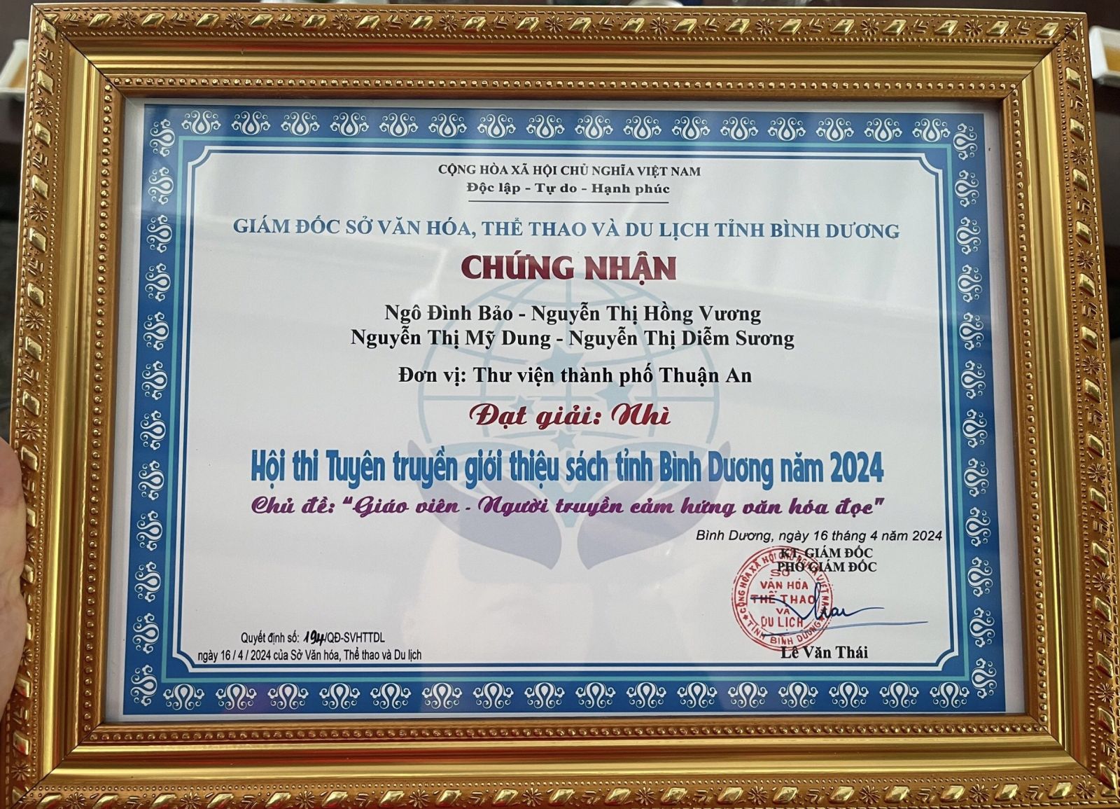 Với chủ đề Giáo viên - Người truyền cảm hứng văn hóa đọc, thư viện trường An Phú đã tiếp nối thành công ở hội thi Tuyên truyền giới thiệu sách thành phố Thuận An, và mang về giải Nhì cho đơn vị Thư viện thành phố Thuận An.