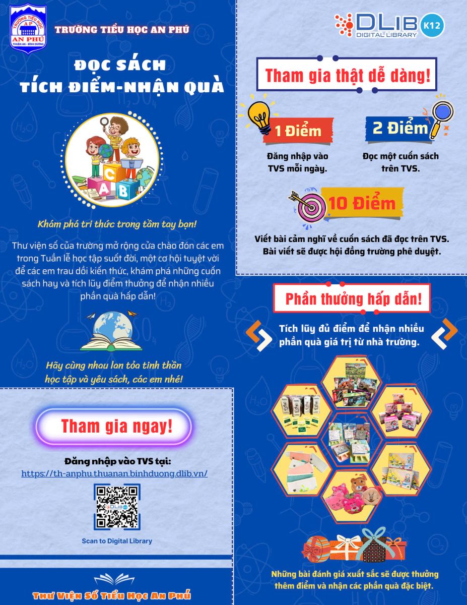 Đây là cơ hội tuyệt vời để các em khám phá kho tàng tri thức, đọc những cuốn sách hay và tích lũy điểm thưởng để nhận nhiều phần quà hấp dẫn từ nhà trường.