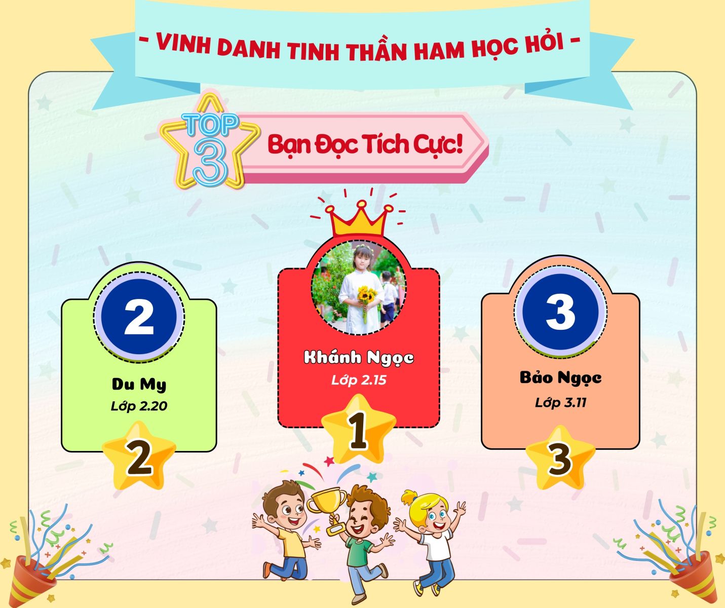 - Hạng 1: Khánh Ngọc – Lớp 2.15